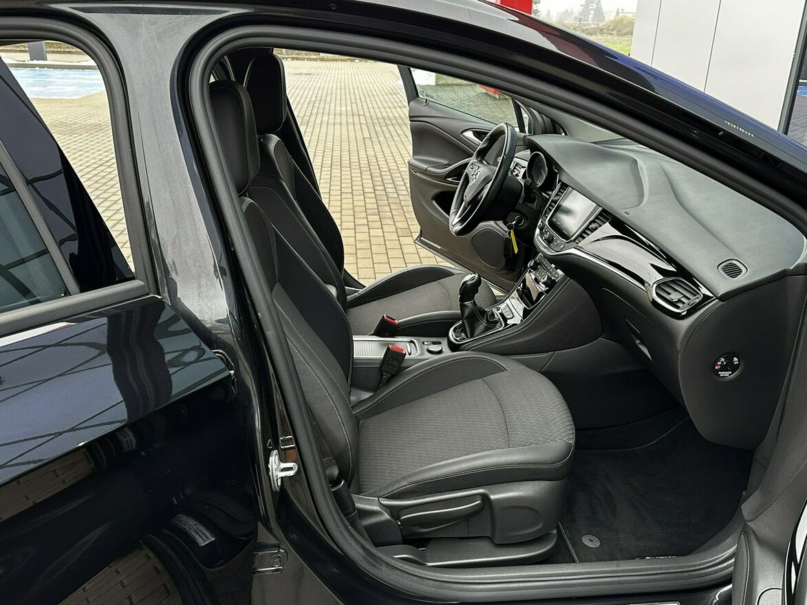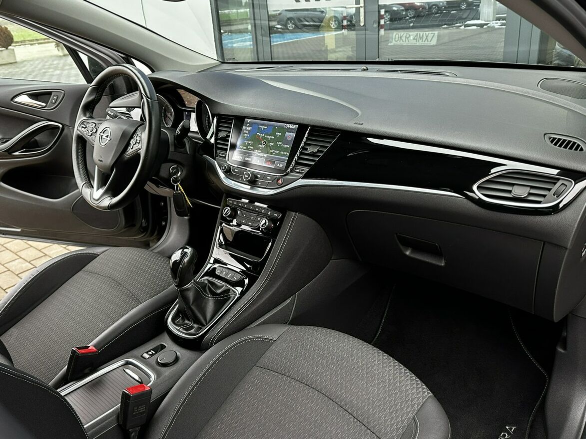 Opel Astra K w wersji z benzynowym silnikiem 1.4 o mocy 125 KM, 100% sprawna technicznie - gotowa do jazdy, bezwypadkowa, wnętrze zadbane, poprzedni właściciel niepalący, komplet kluczyków, alufelgi 16 calowe z oponami wielosezonowymi, reflektory led, czujniki parkowania przednie oraz tylne, kamera cofania, czujnik deszczu oraz zmierzchu, nawigacja, podgrzewane fotele, podgrzewana kierownica, climatronic dwustrefowy, oryginalne radio z Bluetooth, Apple CarPlay, komputer pokładowy, elektryczne szyby i lusterka, asystent pasa ruchu, el. hamulec postojowy.